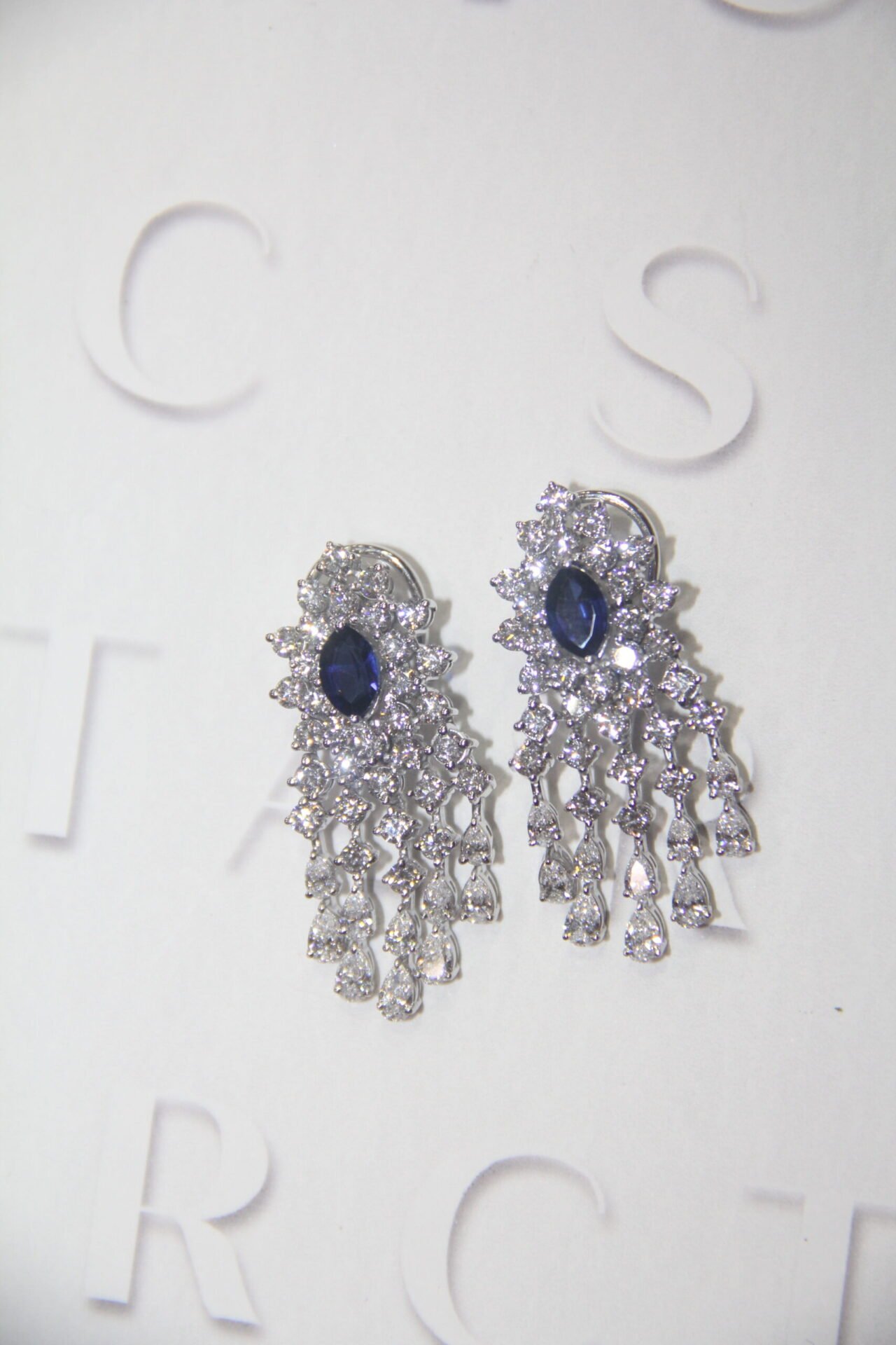 Round brillant cut Lab-grown diamonds with blue sapphaires of approximately 7.90cts set in 14KT gold